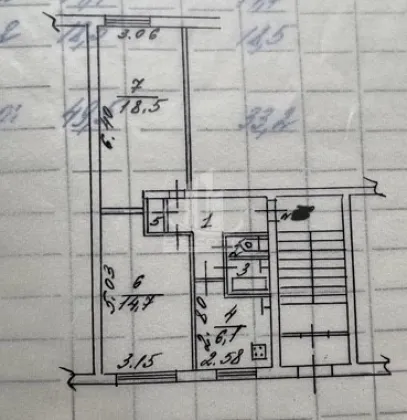 Общая площадь квартиры 50 метров, комнаты 18,5 и 14,7 метров, кухня 6,1 метров.