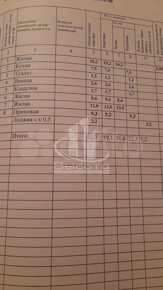 | Площадь, кв.м. | 62.3 |